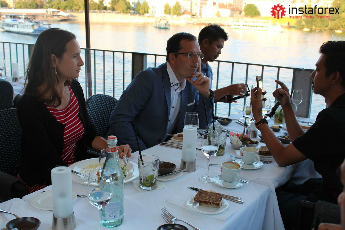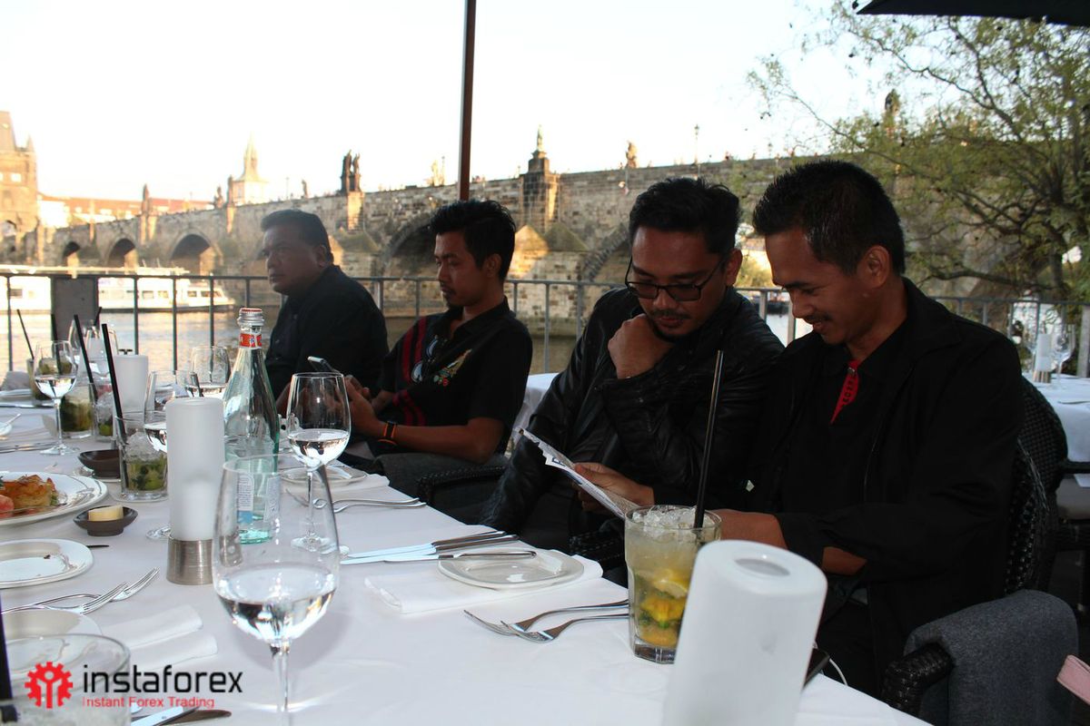Lawatan yang berlangsung selama empat hari berakhir dengan makan malam di Kampa Park - restoran Michelin, salah sebuah restoran dengan pemandangan paling indah di Prague. Selain itu, lokasi ini menawarkan pemandangan Charles Bridge. Restoran ini adalah tempat kegemaran pelakon Hollywood, ahli muzik terkenal dunia, dan selebriti popular lain. Sebagai contoh, Brad Pitt dan Angelina Jolie, Tom Cruise, Kylie Minogue, Daniel Craig dan ramai lagi selebriti lain yang pernah melawat tempat ini. Kami sangat gembira kerana rakan niaga kami bukan sahaja dapat menikmati menu yang menarik dengan pemilihan hidangan antarabangsa tetapi juga mempunyai peluang untuk berasa seperti selebriti sebenar.