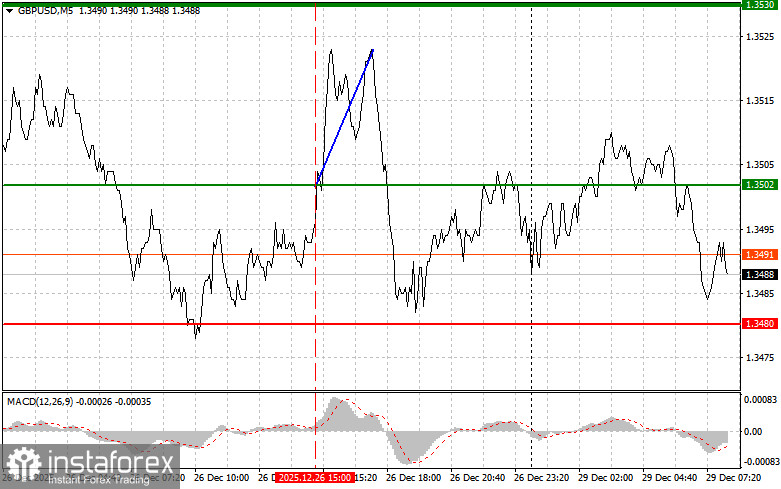 Le test du prix à 1,3502 a coïncidé avec un moment où l'indicateur MACD venait de commencer à monter à partir du point zéro, confirmant ainsi un point d'entrée correct pour acheter la livre. En conséquence, la paire a progressé de 20 pips.