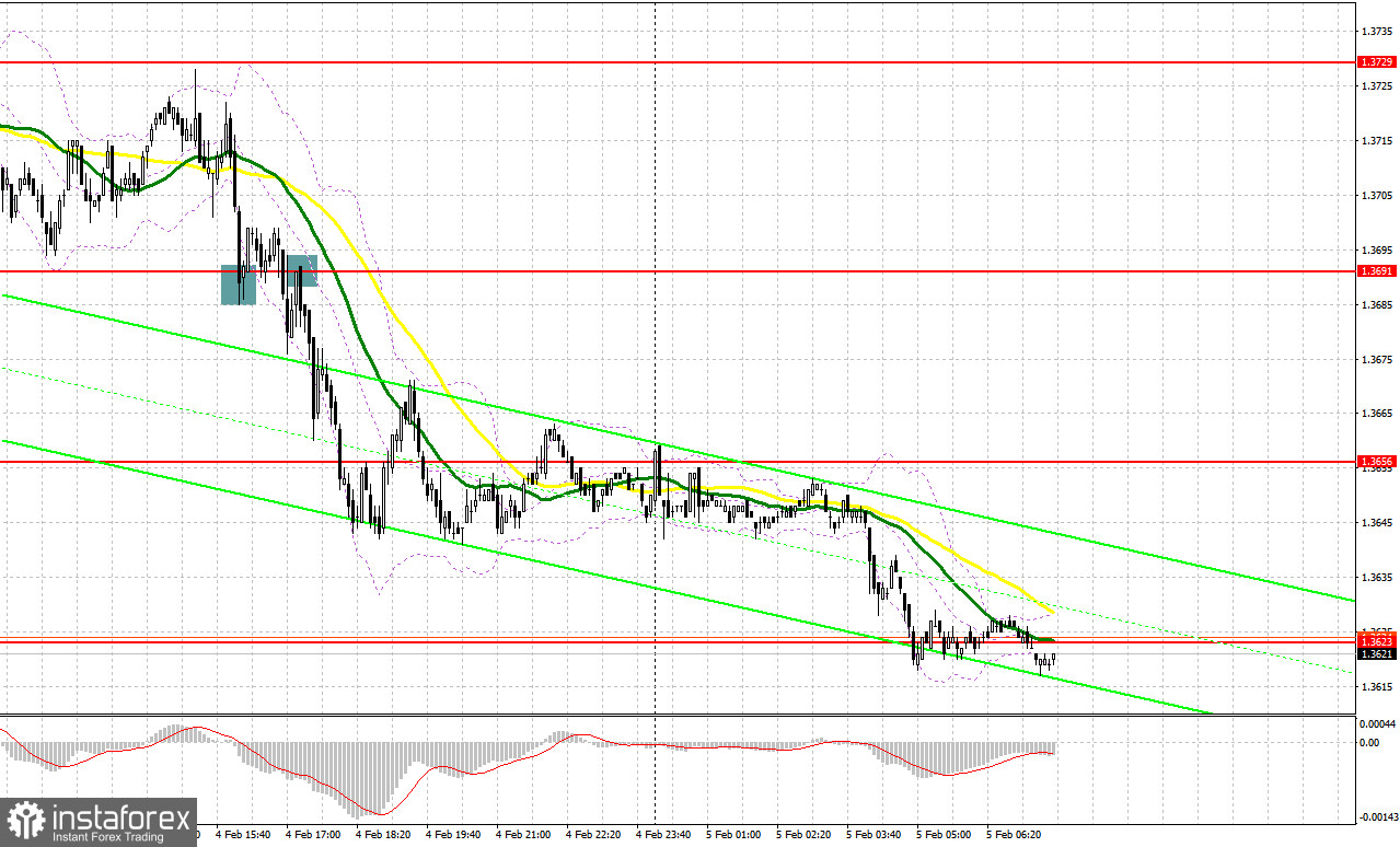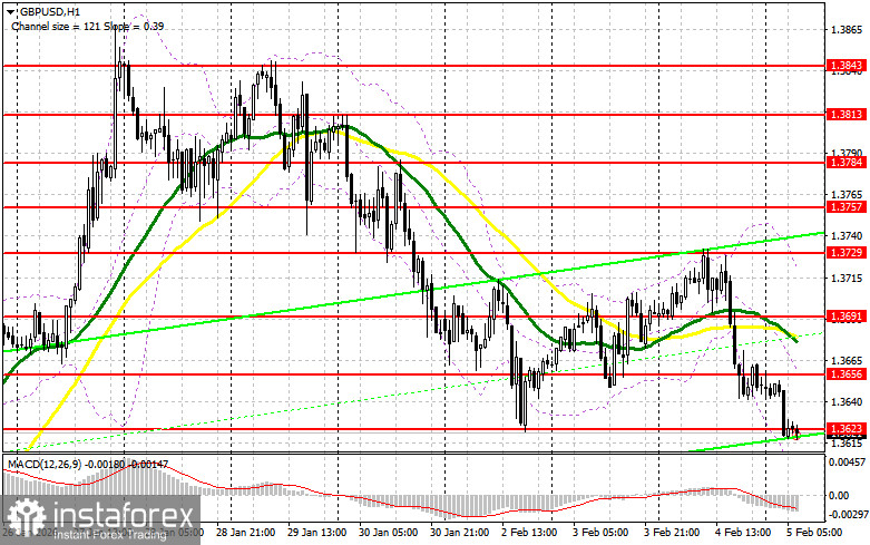 Рынок труда США продолжает демонстрировать признаки слабости, и вчерашний отчет от ADP стал этому прямым подтверждением, на что покупатели фунта отреагировали соответствующе. Однако сильного давления на доллар не произошло благодаря хорошим данным от ISM. Сегодня у нас выходит индекс PMI для строительного сектора Великобритании, а также ожидается решение по основной процентной ставке Банка Англии и выступление губернатора Банка Англии Эндрю Бэйли с речью. Скорей всего ставки останутся без изменений, что может несколько ограничить давление на британский фунт, наблюдаемое в последнее время. Многое будет зависеть от комментариев Бэйли. Жесткая позиция приведет к укреплению GBP/USD. В случае медвежьей реакции на данные, быкам можно рассчитывать на формирование ложного пробоя в районе поддержки 1.3593, что приведет к хорошей точке входа в длинные позиции с рывком на 1.3623, где сейчас и ведется торговля. Прорыв и обратный тест сверху вниз этого диапазона увеличат шансы на укрепление GBP/USD, что приведет к сносу стоп-приказов продавцов и подходящей точке входа в длинные позиции с возможностью выхода к 1.3656, где ожидаю уже более активного проявления медведей. Самой дальней целью будет область 1.3691, где собираюсь фиксировать прибыль. Тест этого уровня вернет бычий рынок. При сценарии снижения GBP/USD и отсутствия активности со стороны покупателей на 1.3593, давление на пару только увеличится, что приведет к движению в район следующей поддержки 1.3564. Лишь формирование там ложного пробоя будет подходящим условием на открытие длинных позиций далее по тренду. Покупать GBP/USD сразу на отскок собираюсь от минимума 1.3539 с целью коррекции в 30-35 пунктов внутри дня.
