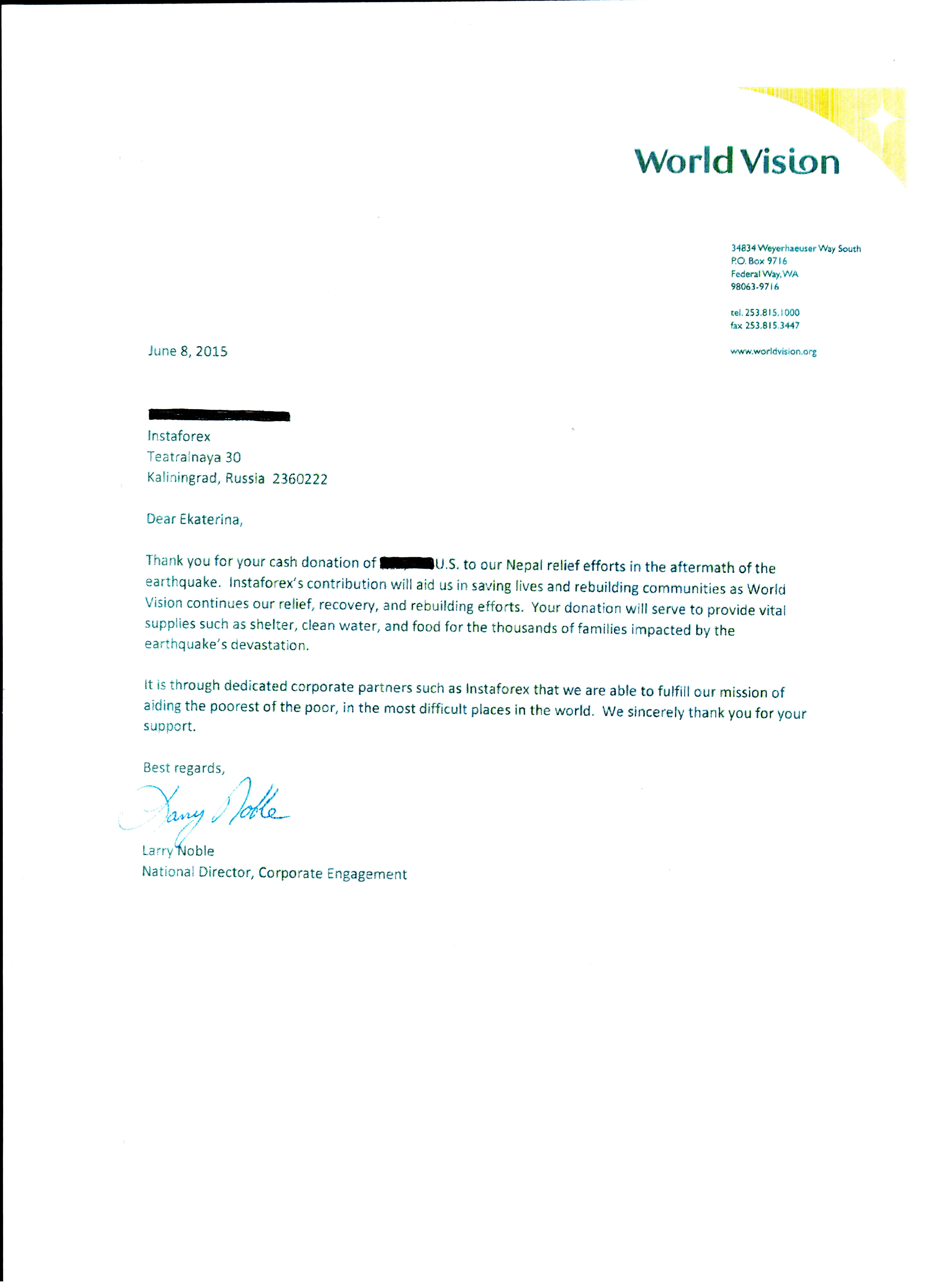 Currently the World Vision organization, along with other humanitarian institutions, takes part in relief efforts for the devastating earthquake that hit western Nepal on April 25, 2015. InstaTrade stepped in to support the victims and transferred money to the organization's fund as a charity.