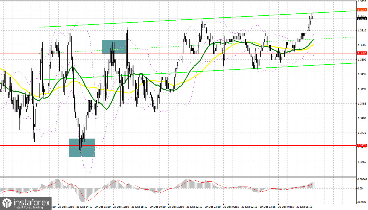 Хоть продавцы фунта и проявили себя, но торговля все еще ведется в рамках бокового канала, что сохраняет шансы на рост фунта далее по тренду. По этой причине с продажами будьте осторожны. В случае роста пары на фоне отсутствия статистики по Великобритании, на проявление медведей можно рассчитывать в районе сопротивления 1.3531. Лишь формирование там ложного пробоя будет поводом для продажи GBP/USD с целью снижения в район поддержки 1.3500. Прорыв и обратный тест снизу вверх этого диапазона нанесут более крупный удар по позициям покупателей, приведя к сносу стоп-приказов и открыв путь к 1.3471. Самой дальней целью выступит область 1.3442, где буду фиксировать прибыль. При варианте роста GBP/USD и отсутствия активности на 1.3531, покупатели вернутся к развитию тренда, что может привести к рывку в район 1.3561. Открывать там короткие позиции собираюсь также лишь на ложном пробое. При отсутствии движения вниз и там я буду продавать GBP/USD сразу на отскок от 1.3590, но лишь в расчете на коррекцию пары вниз на 30-35 пунктов внутри дня.