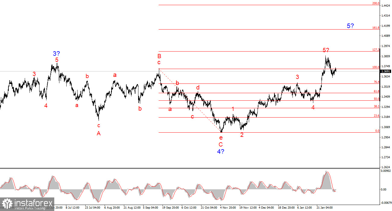 Исходя из проведенного анализа EUR/USD, я делаю вывод, что инструмент продолжает построение повышательного участка тренда. Политика Дональда Трампа и денежно-кредитная политика ФРС остаются весомыми факторами падения американской валюты в долгосрочном плане. Цели текущего участка тренда могут простираться вплоть до 25-й фигуры. На текущий момент я считаю, что глобальная волна 4 завершила свое построение, поэтому ожидаю дальнейшего повышения котировок. Но в ближайшее время я ожидаю понижательную волну, так как серия волн a-b-c-d-e также выглядит завершенно. В ближайшее время мои читатели могут заняться поиском ориентиров для новых покупок.
