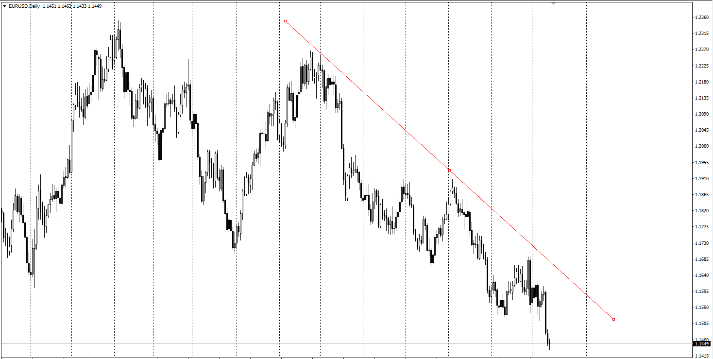 Sudut antara garis trend dan paksi mendatar menunjukkan keamatan emosi dalam mood dominan pedagang.
