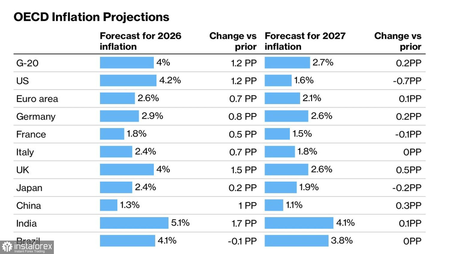Прогнозы ОЭСР по инфляции