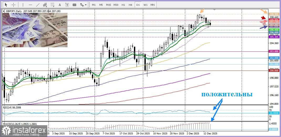 17.12.2025 10:48Сегодня пара GBP/JPY продолжает свою коррекцию от максимума декабря, приближаясь к круглому уровню 207,00.
