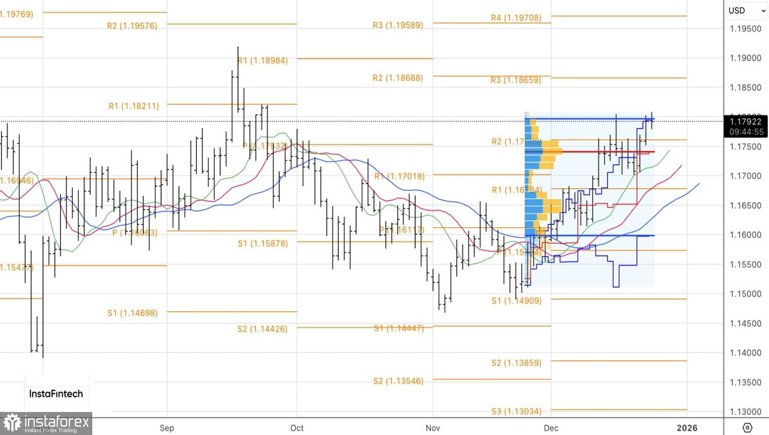 Технически на дневном графике EUR/USD неспособность «быков» удержать котировки выше верхней границы диапазона справедливой стоимости 1,1600-1,1795 станет первым признаком их слабости и поводом для формирования краткосрочных шортов. Напротив, успех покупателей и закрепление за ними уровня $1,1795 позволит евро продолжить ралли.