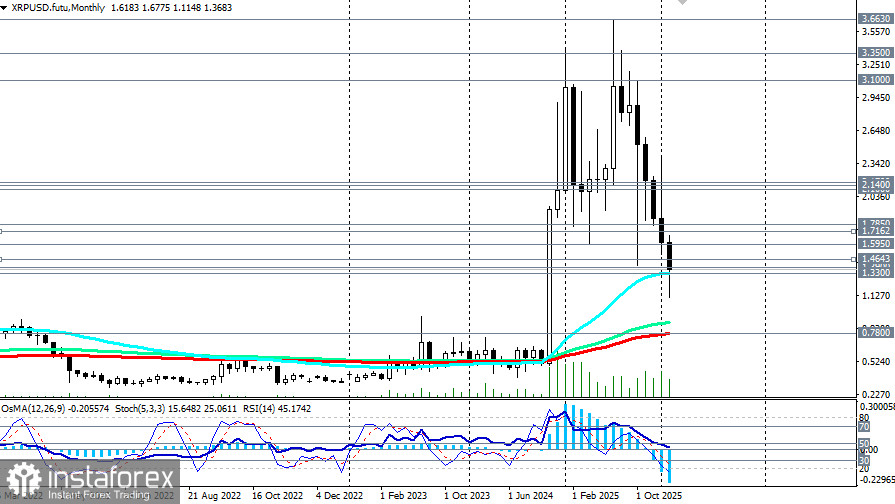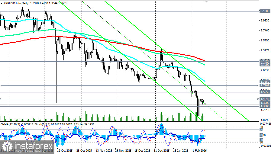 Если отчет Минтруда выйдет с сильными показателями, то стоит ждать укрепления USD и продолжения падения пары XRP/USD в сторону 1.1150 (минимумы с середины ноября 2024 года и прошлой недели). В случае дальнейшего снижения целями станут ключевые стратегические уровни поддержки 0.8850 (ЕМА144 на месячном графике), 0.7800 (ЕМА200 на месячном графике), отделяющие глобальный бычий рынок цены от медвежьего.