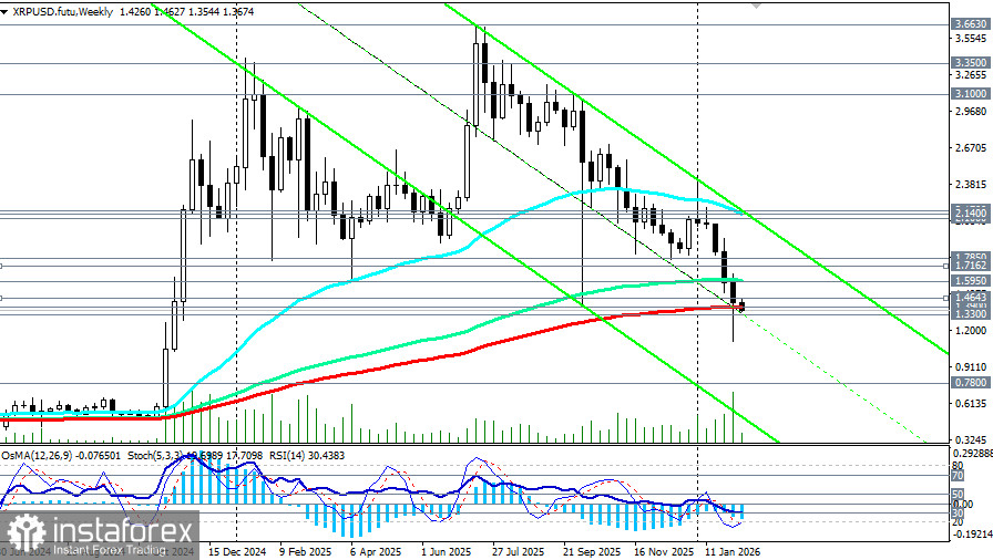 В альтернативном сценарии XRP/USD предпримет попытку возврата в зону долгосрочного бычьего рынка и выше ключевого уровня сопротивления 1.3900 (ЕМА200 на недельном графике).